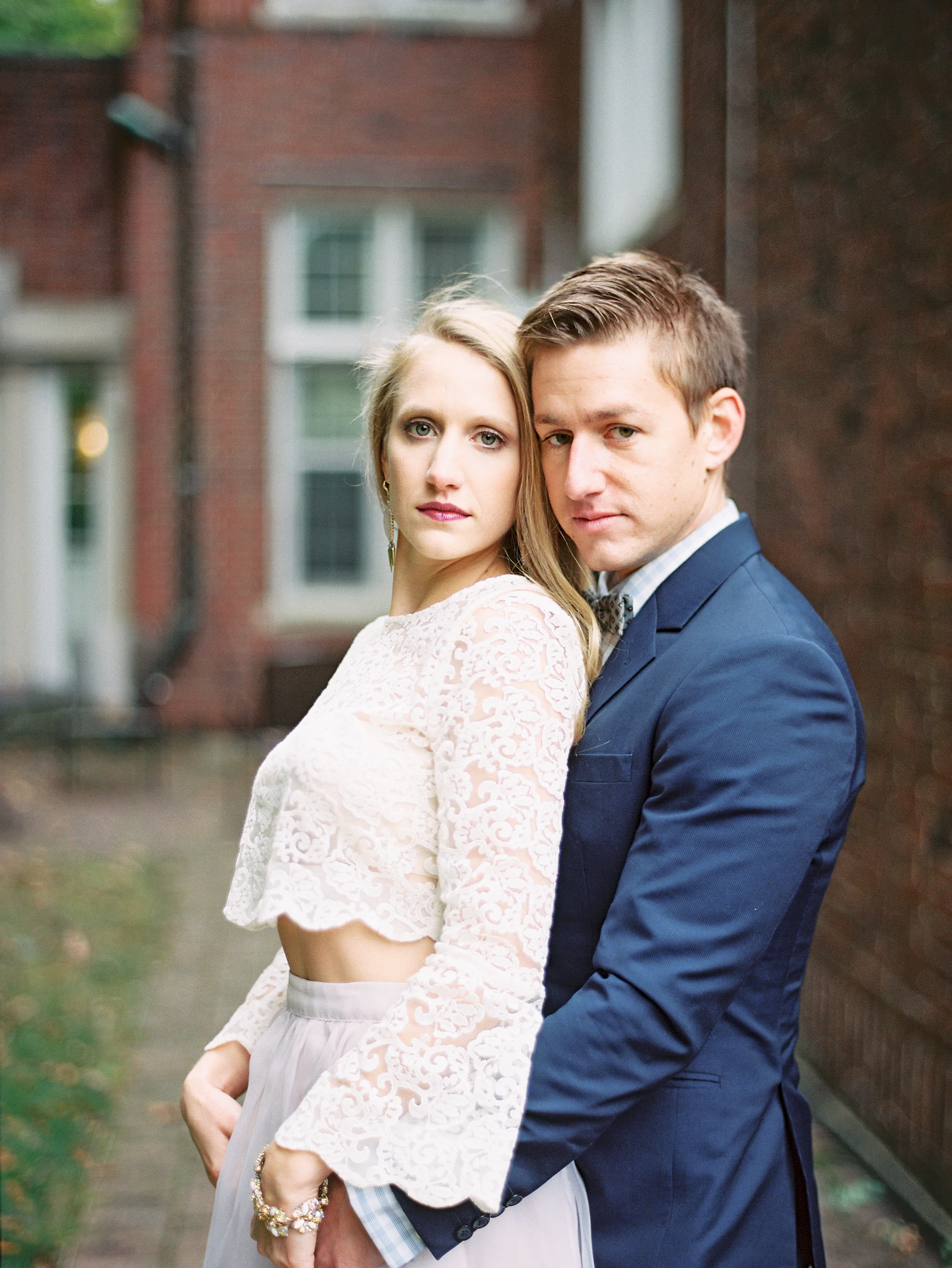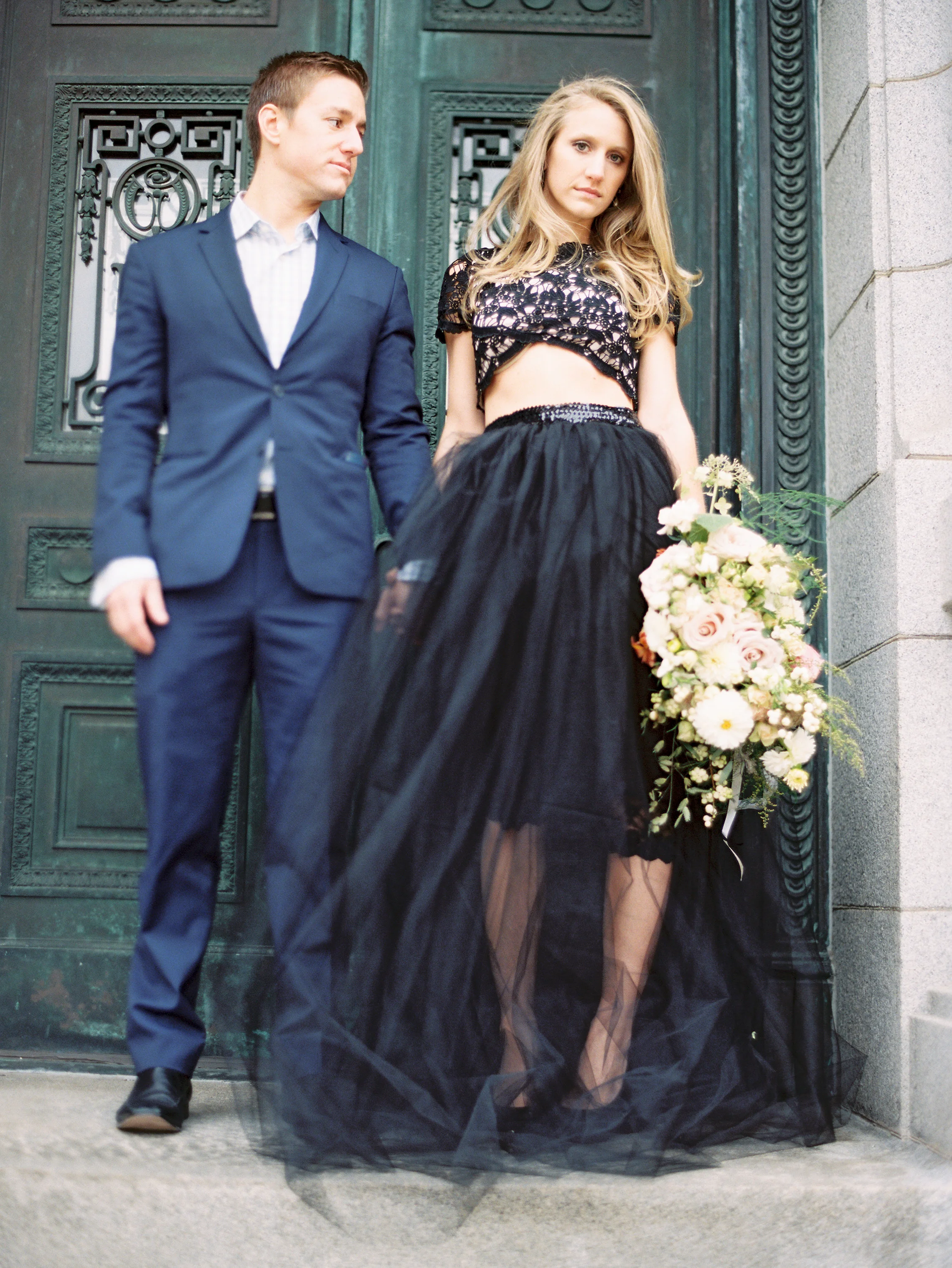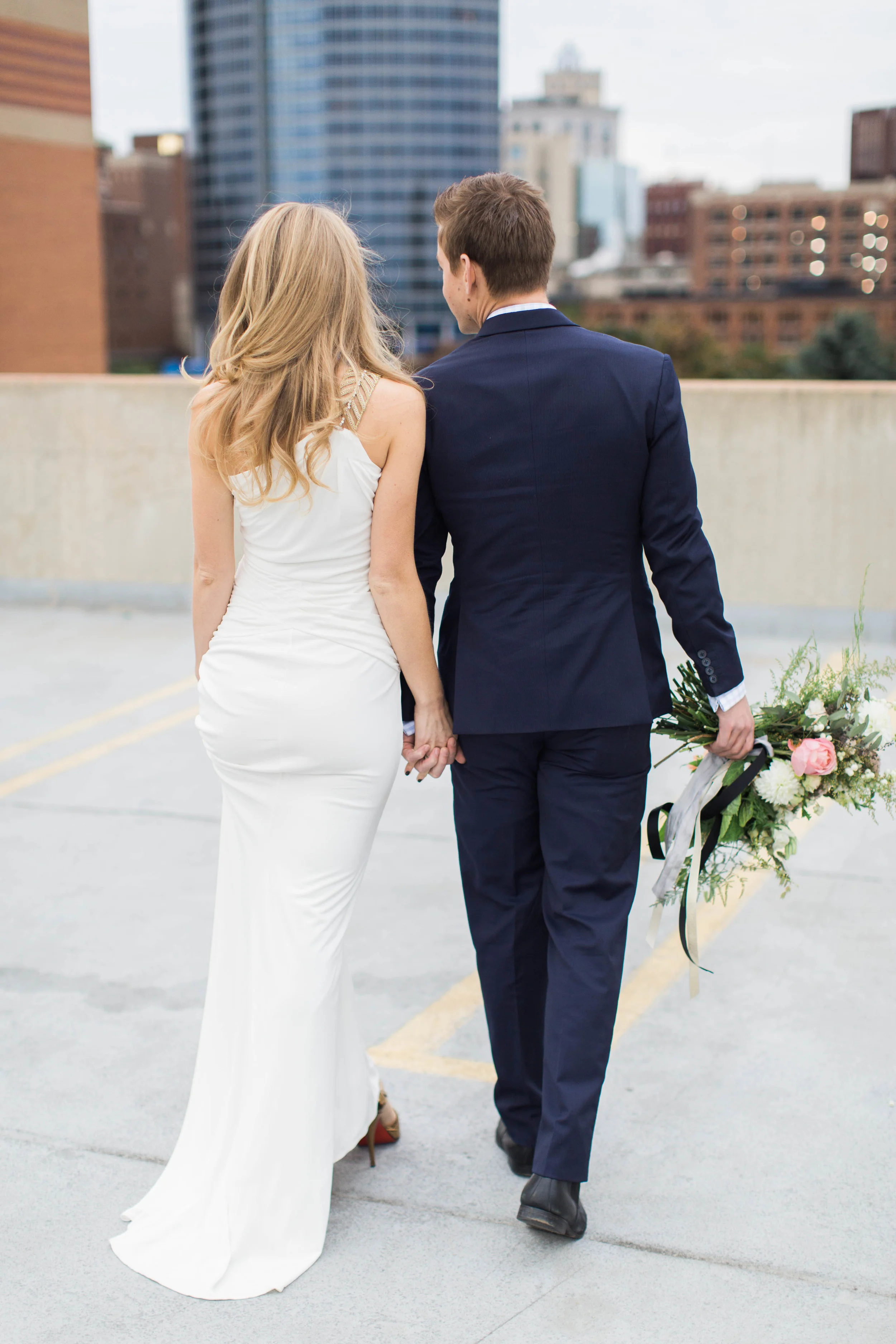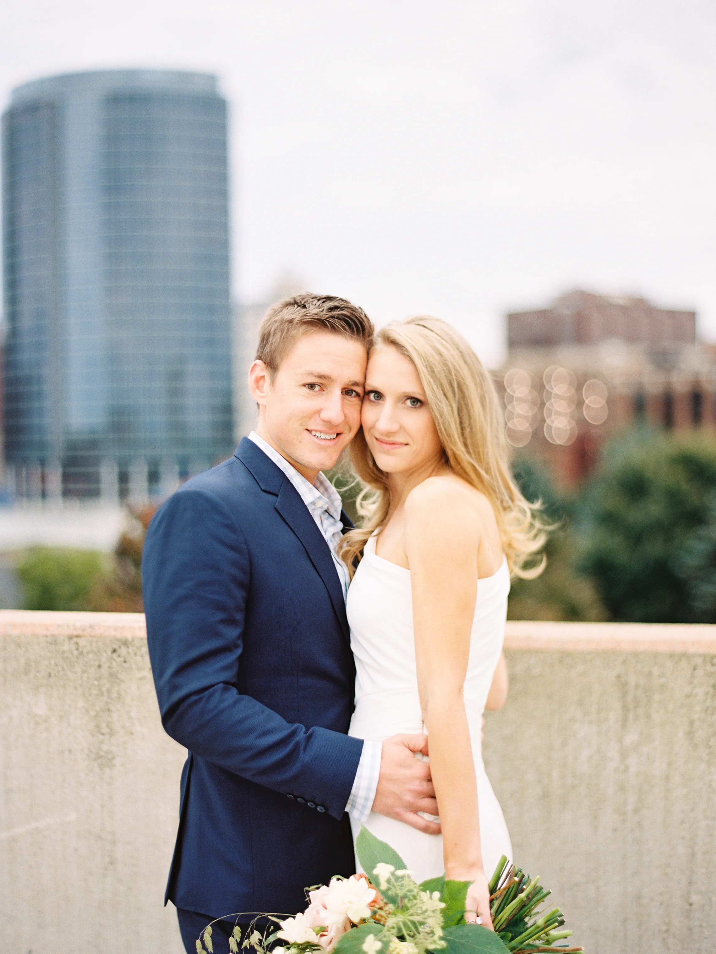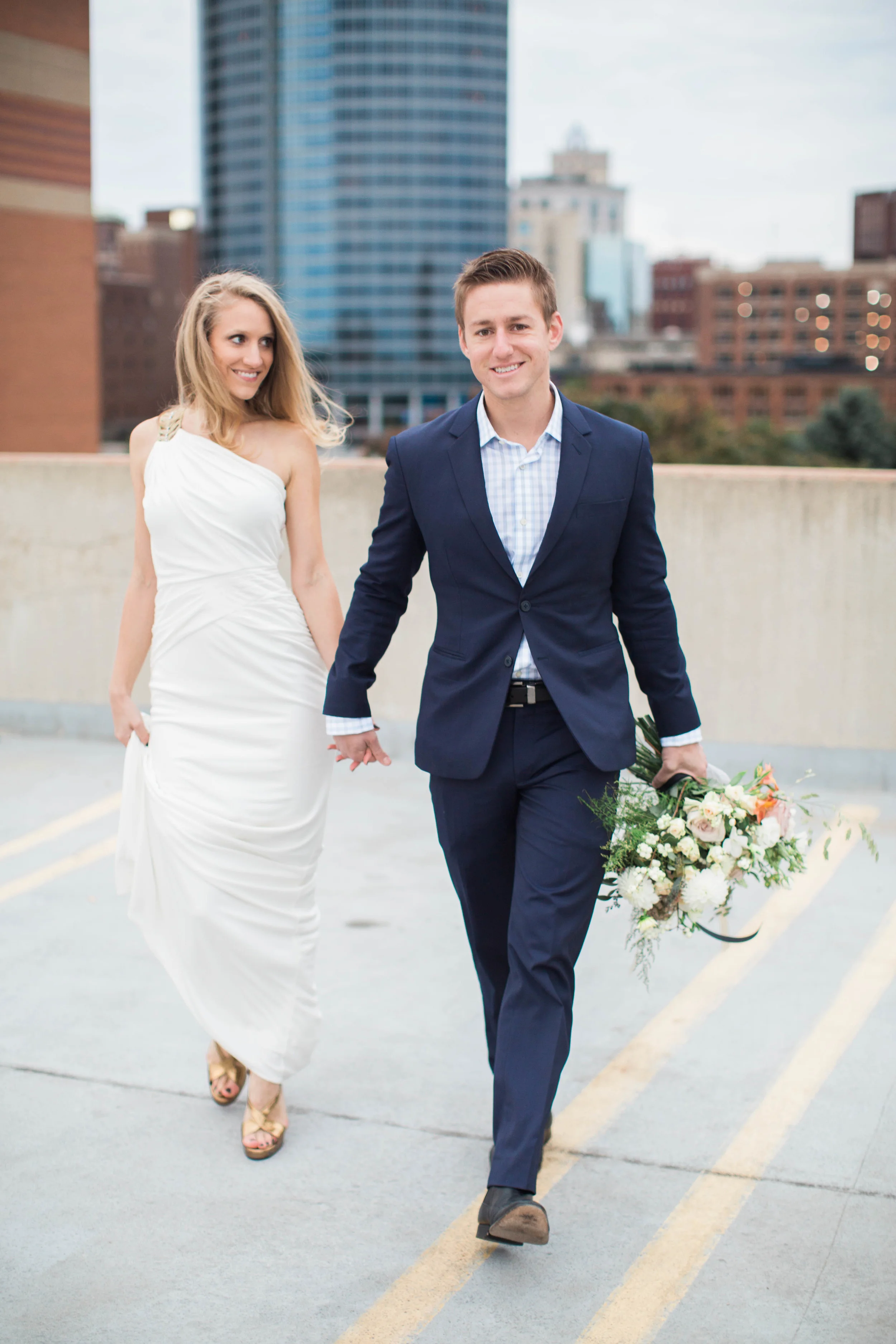 I met with Nancy and Andrew a few weeks ago while it was still dark in the city of Grand Rapids. We met early, hoping to catch the sunrise on what turned out to be a blustery, sunless, windy day! Despite the cold, Nancy strutted her stuff around the city in a gorgeous gown and skirts (one hand made) and we had so much fun. A floral bouquet by Shelby of The Day's Design really made the rooftop start to our session extra special. These two are so fun and such a sweet couple. I can't wait for their September 2016 wedding! Here are a few of my favorites from our time together!