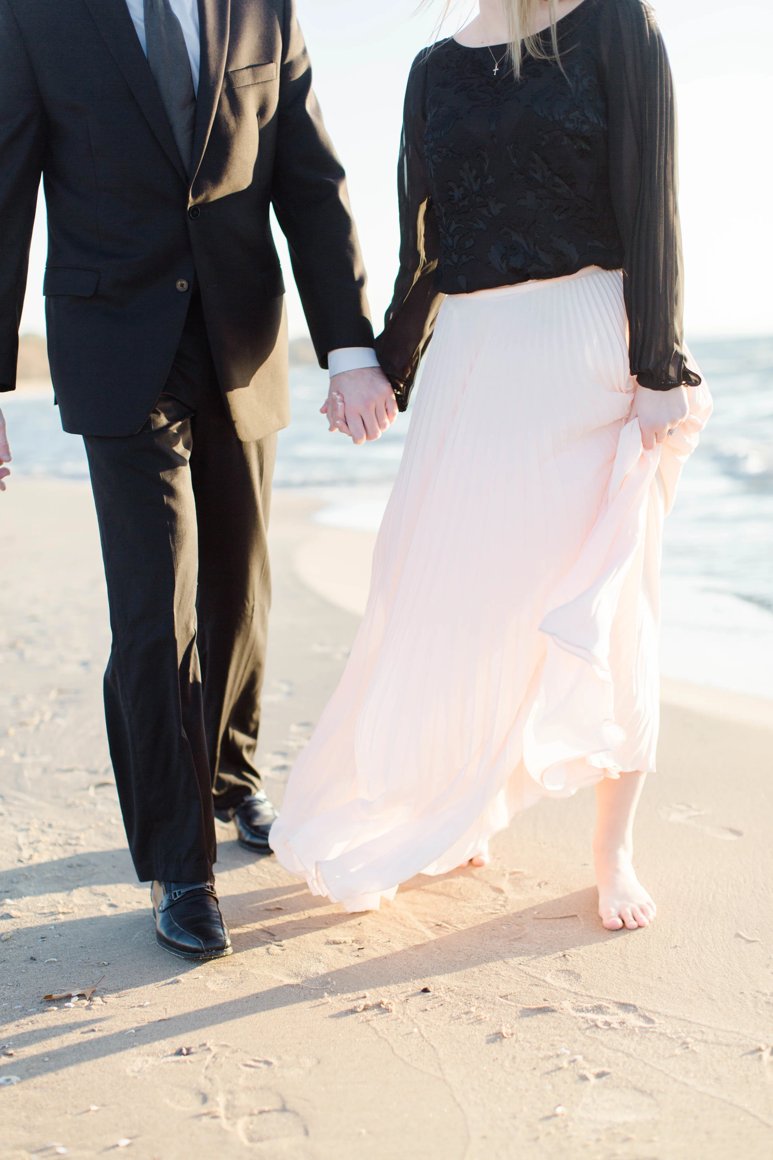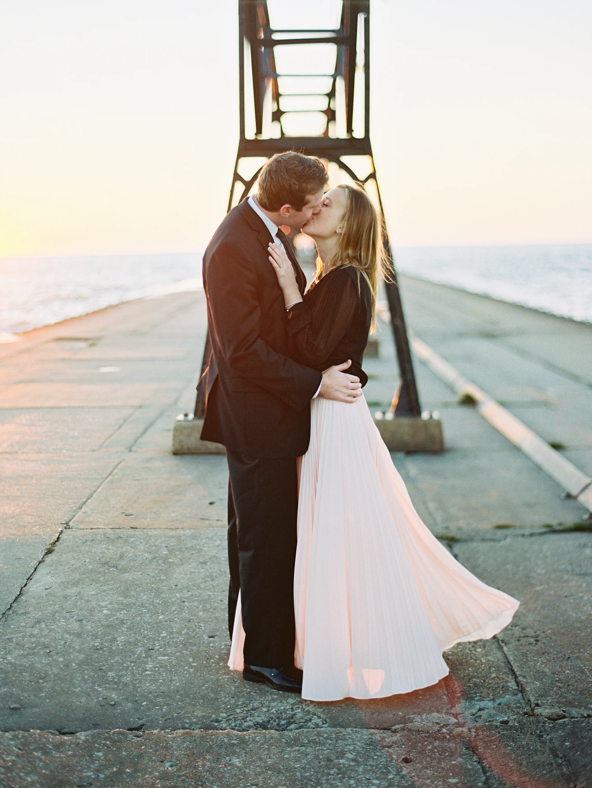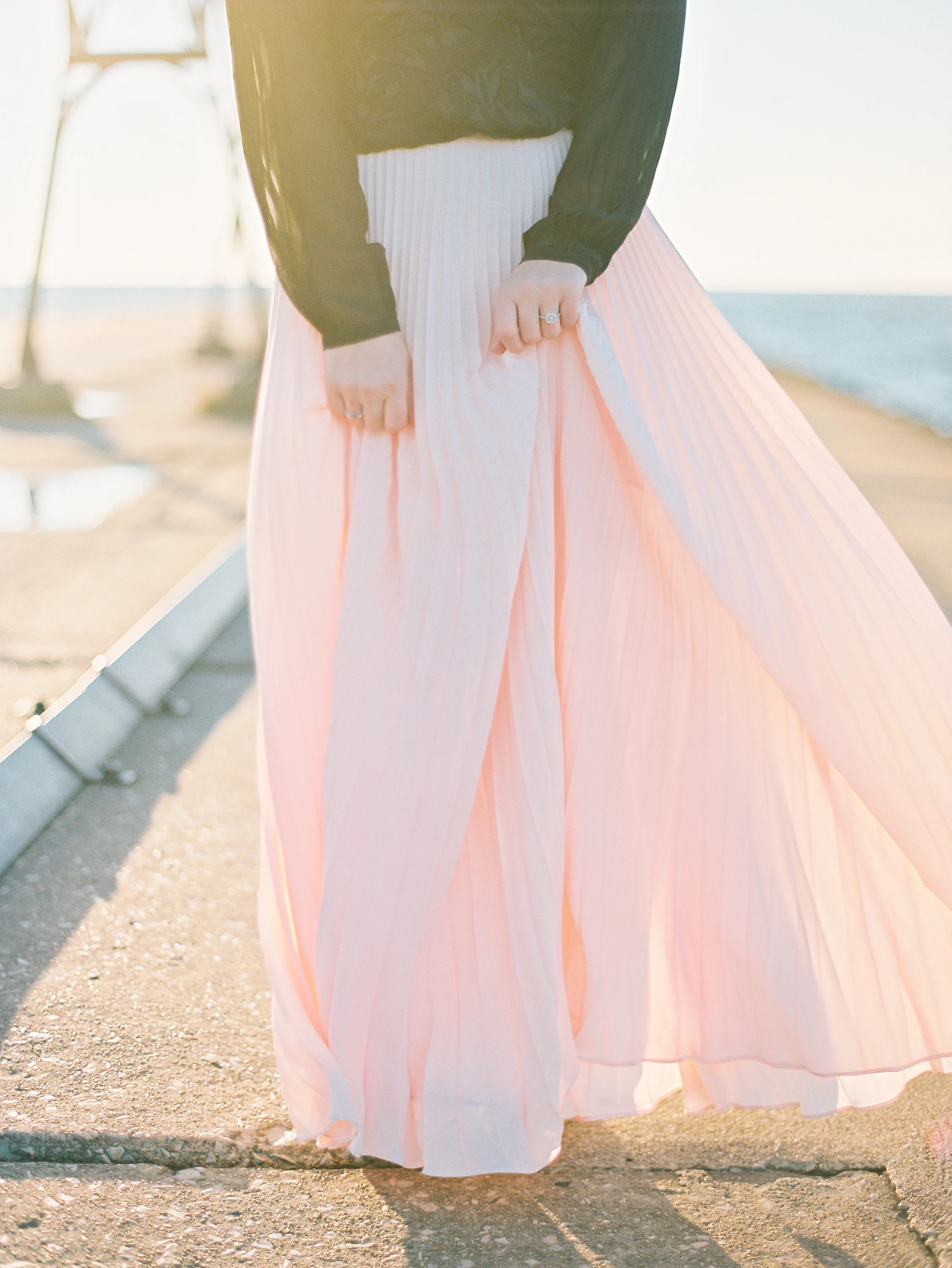 I love each and every one of my engagement sessions for different reasons, but this one definitely stood out. It was a frigid day on the lake, and Alex & Megan braved the cold to get some amazing photos before winter hit this beach town. I always recommend dressing to the nines for engagement sessions, and Megan's blush pink skirt billowing in the wind is pretty breathtaking and makes my case for me: dressing up is always the right choice!