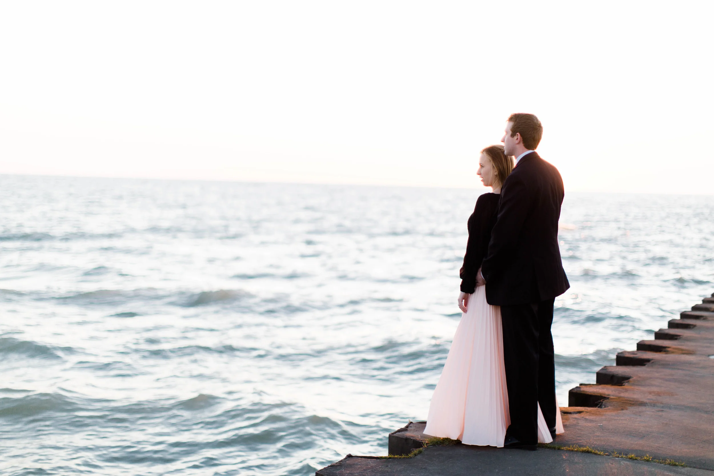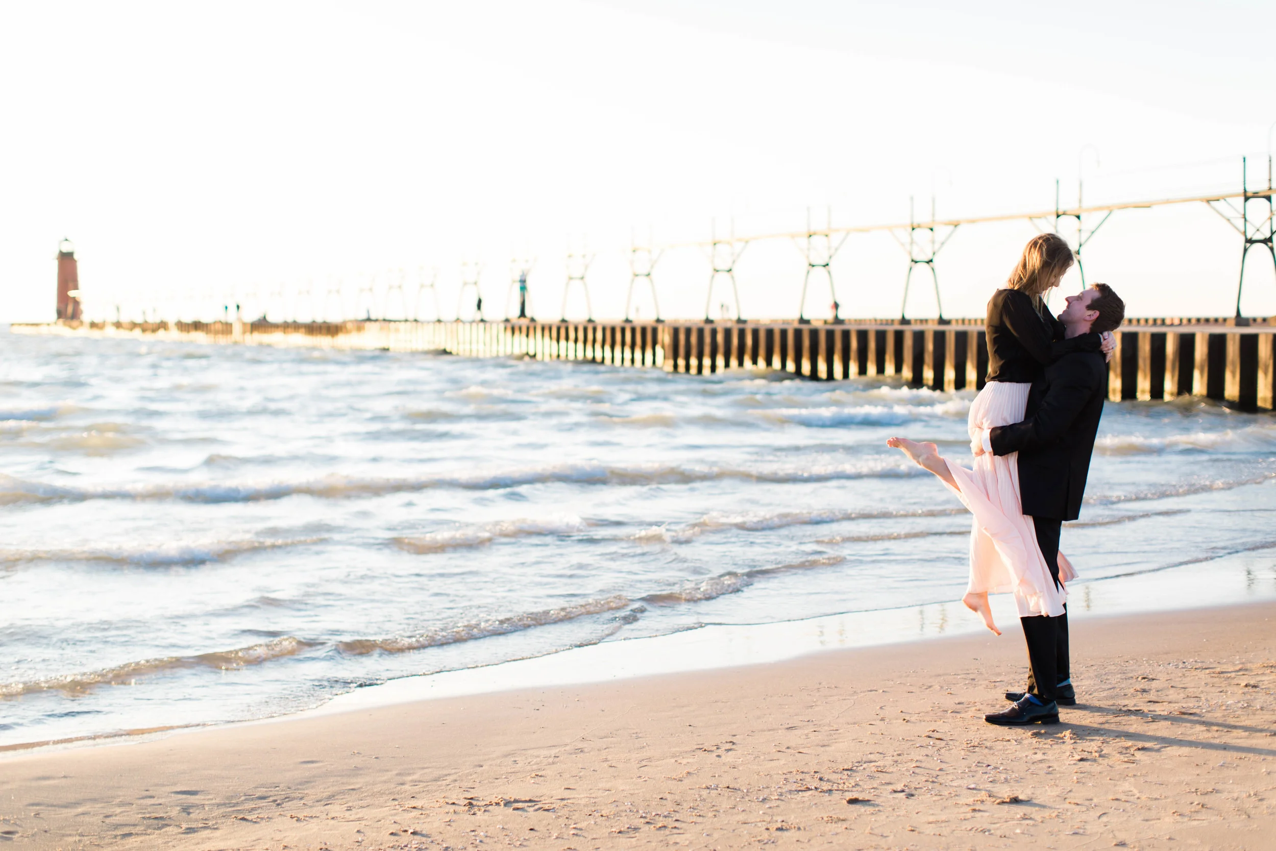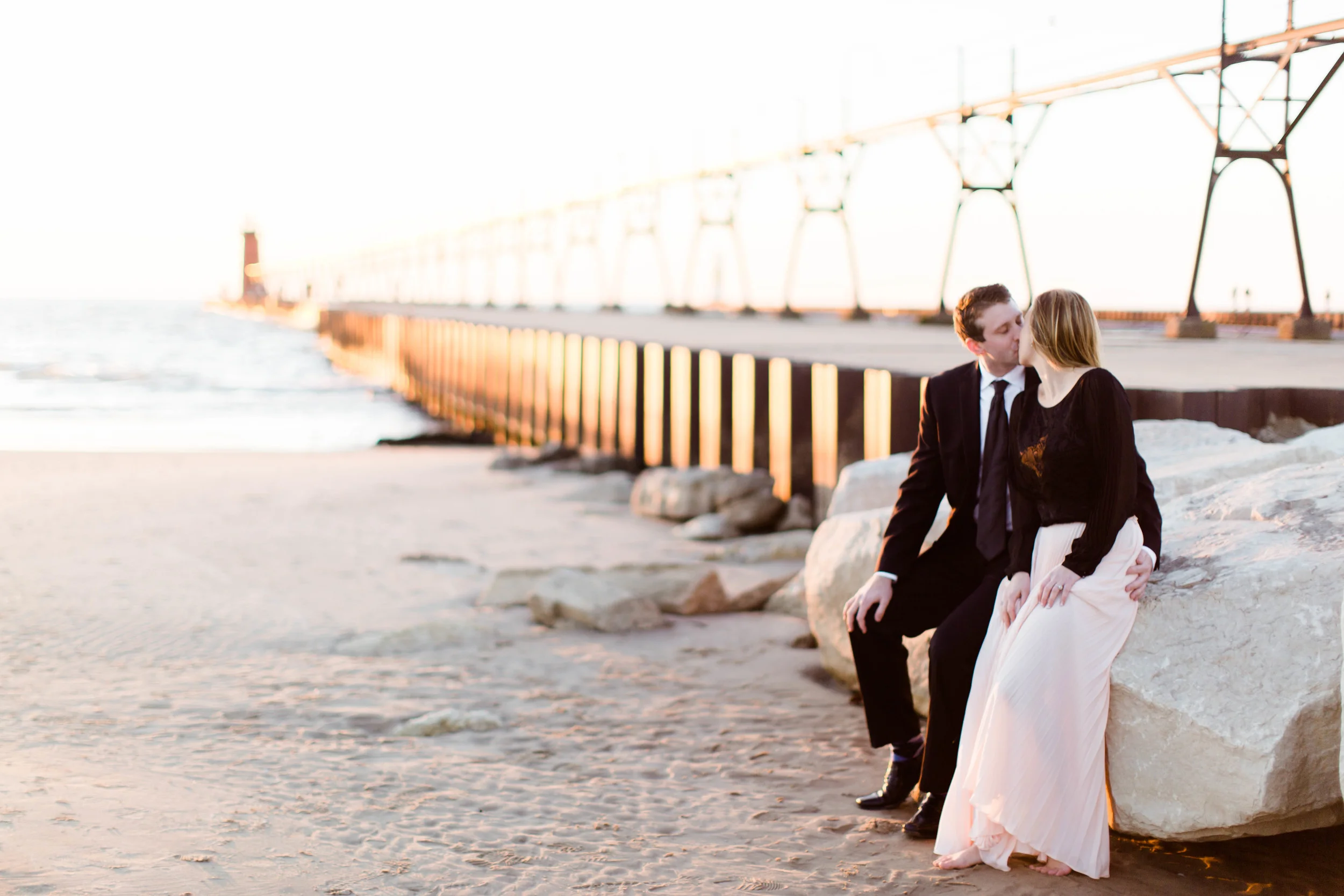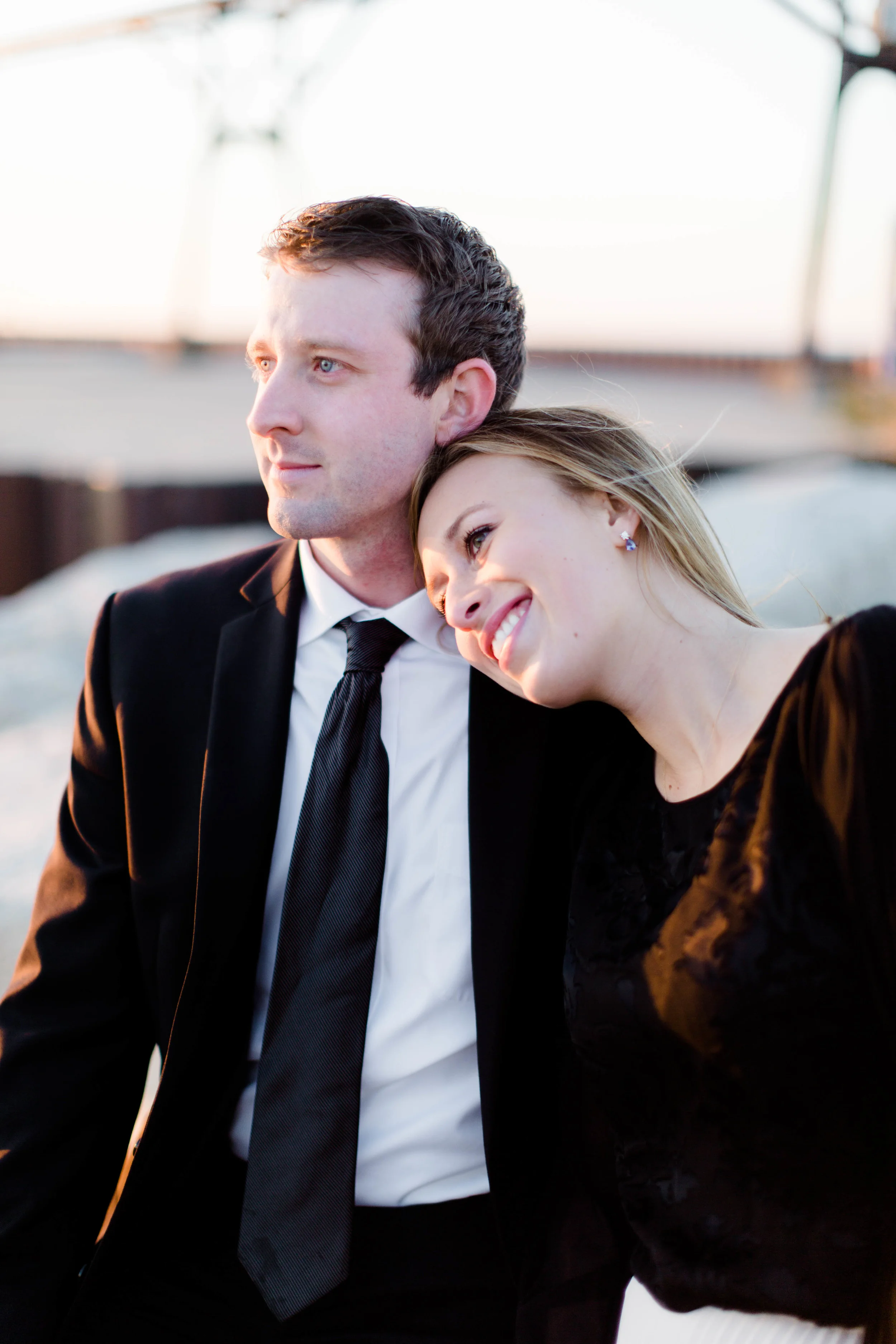 I love each and every one of my engagement sessions for different reasons, but this one definitely stood out. It was a frigid day on the lake, and Alex & Megan braved the cold to get some amazing photos before winter hit this beach town. I always recommend dressing to the nines for engagement sessions, and Megan's blush pink skirt billowing in the wind is pretty breathtaking and makes my case for me: dressing up is always the right choice!