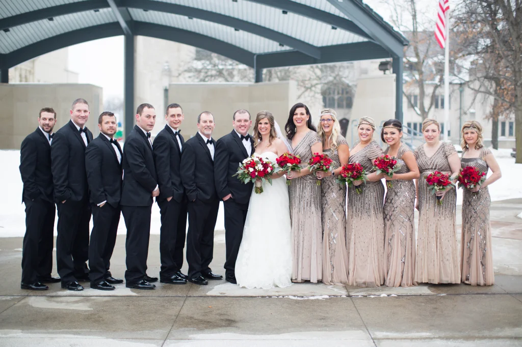 It's the middle of the summer here in Michigan (in fact today is the hottest day we have had thus far!) and I am recapping some of my favorite weddings. This particular event from this past January has me anticipating the holidays already! The Gatsby inspired details were impeccable, and gold glitter and red during our snowy winters here was beyond gorgeous! Every year I always say I am not going to work in the winter here anymore, but then a wedding like this comes along and makes me fall in love with winter events all over again. Here are some of my favorites from Jim + Laura's wedding day! Scroll to the bottom to browse the gallery!