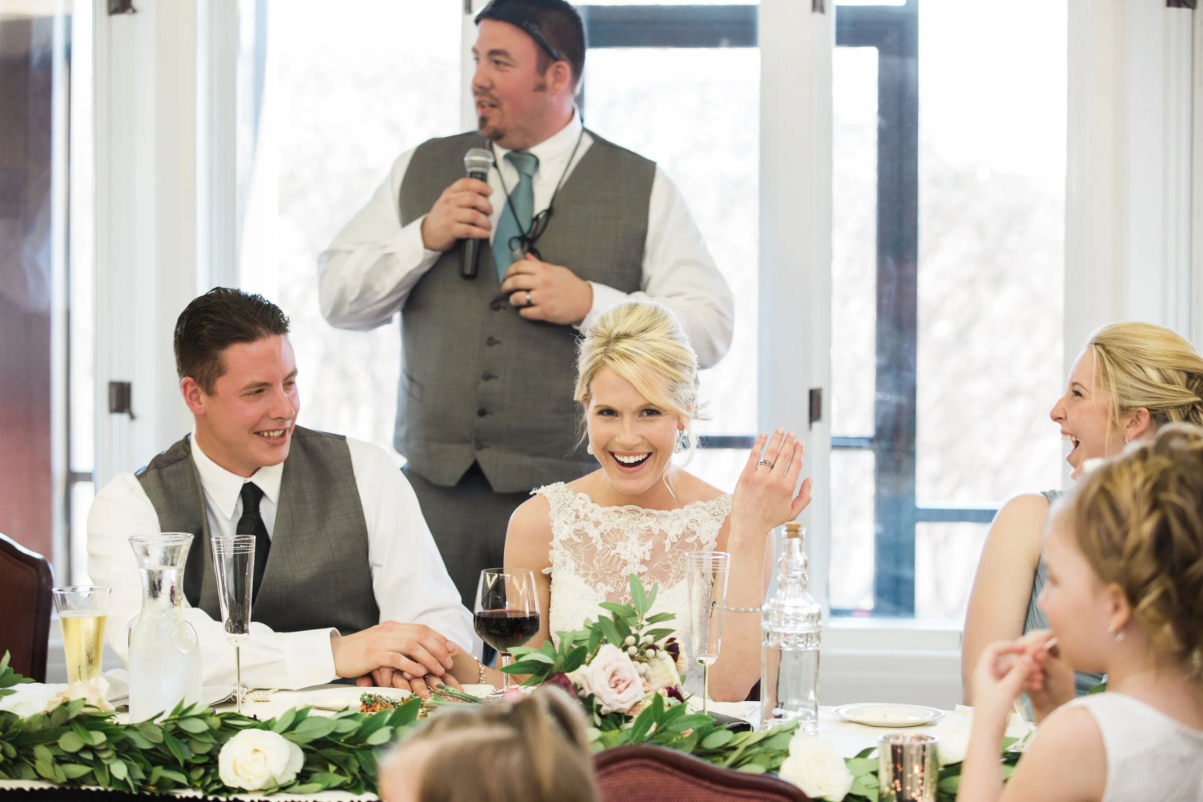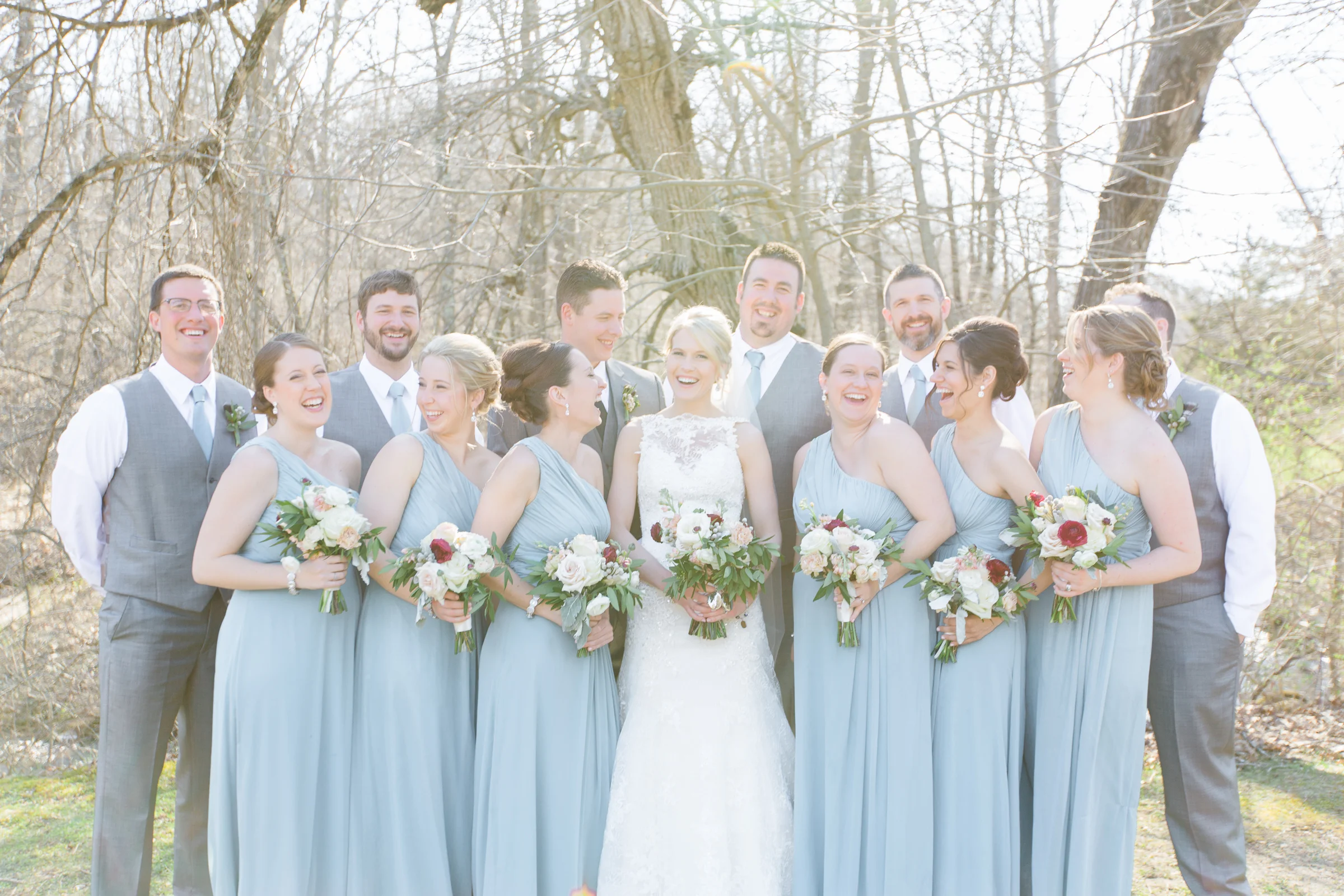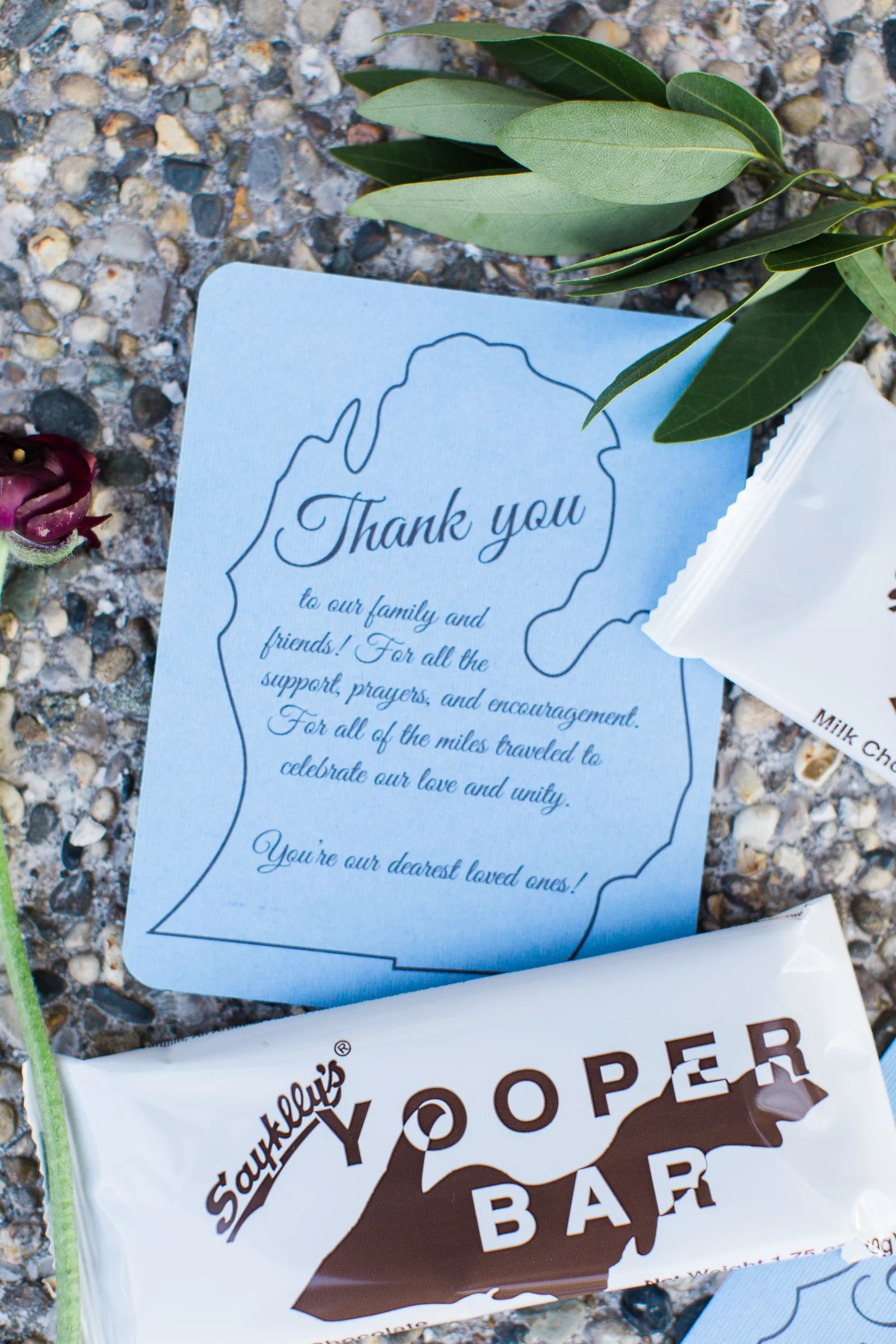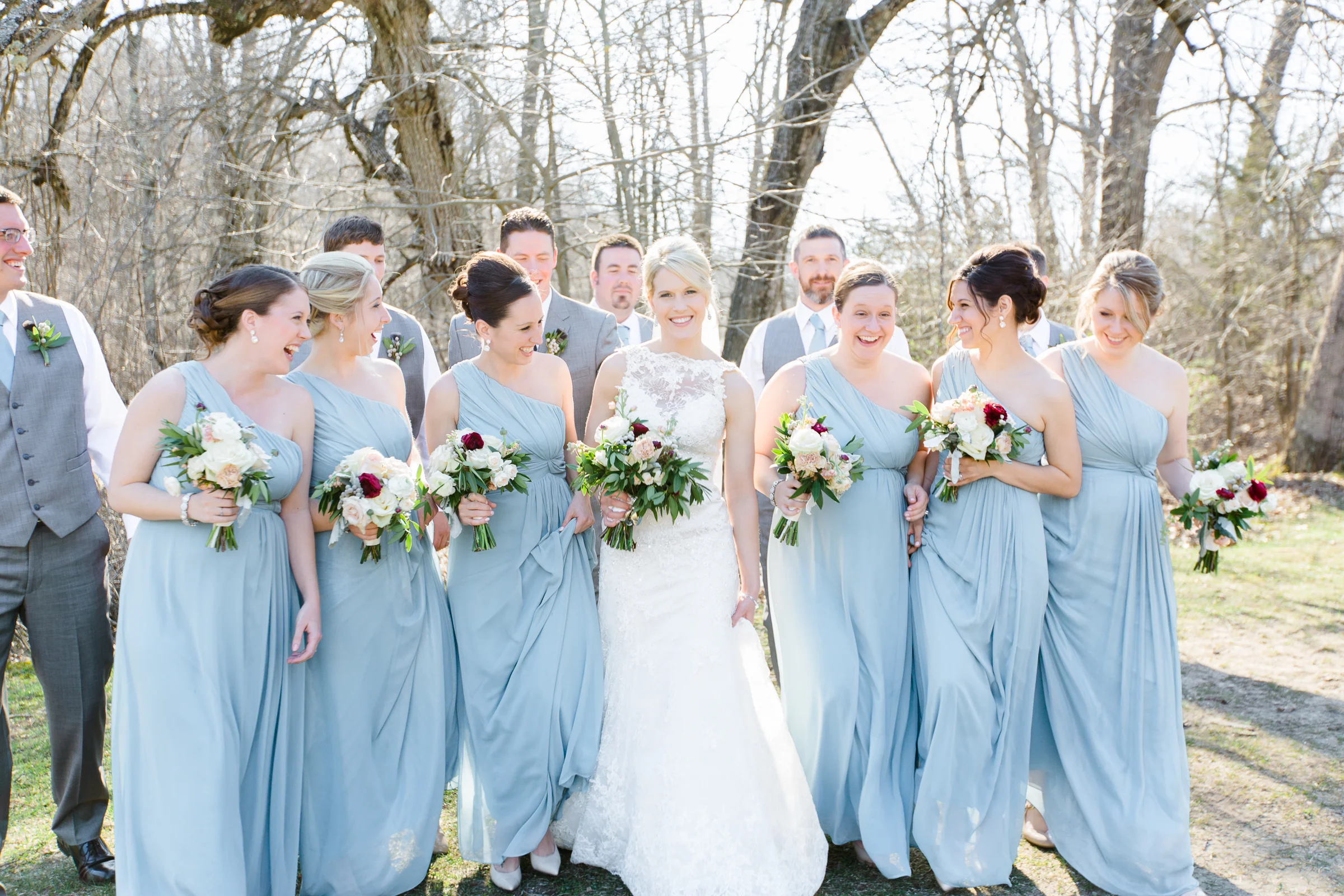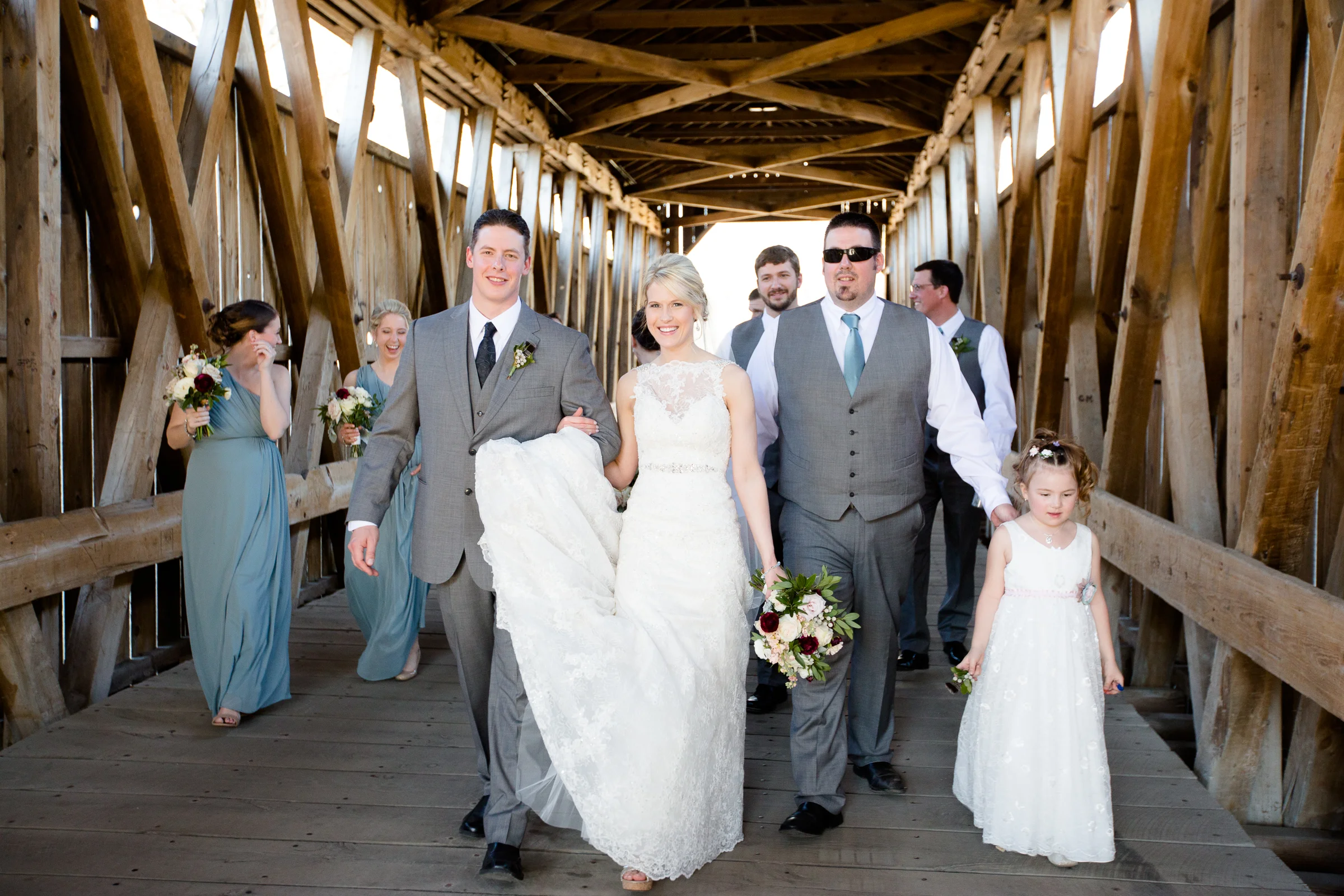 Developed: Indie Film Lab/Wedding Dress: Becker's Bridal/Hankies: Bumblebee Linens/Florals: Spring Sweet/Hair: Kiley Rasch for VIP salon/Make-up: Pomp & Artistry (Emily)/Bridesmaid Dresses: Bridal Gallery/Hair accessories: Hair Comes the Bride/Cake Topper: Better Off Wed/Caterer: Blythefield Country Club/DJ: Music Host Entertainment/Videography: LOE Productions/Favor Yooper Bars: Sayklly's