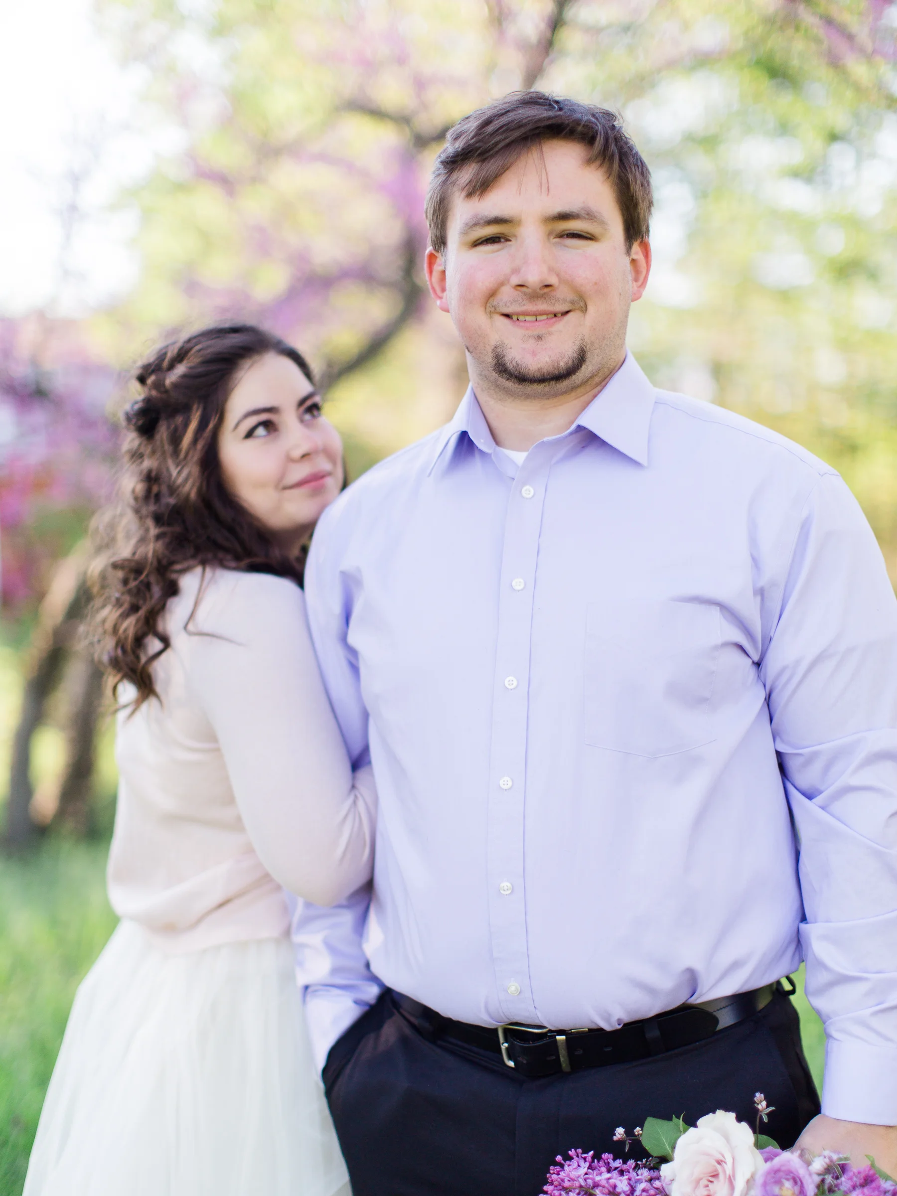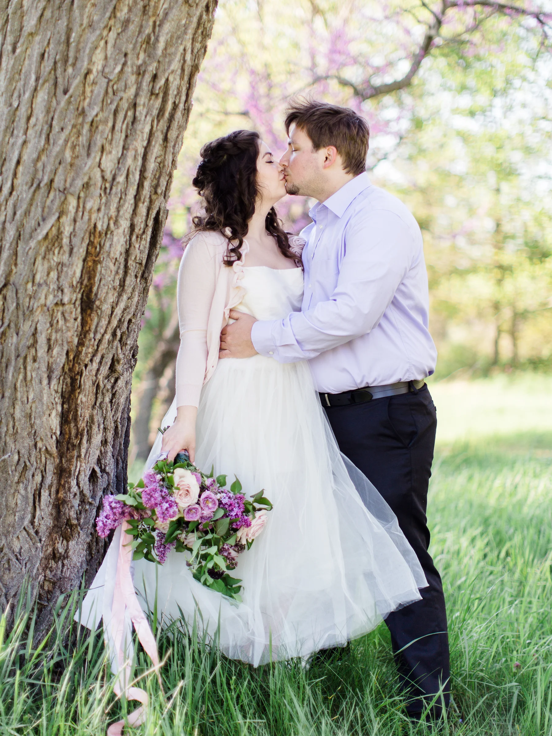 I get so excited when I find new and wonderful places to photograph couples in love. Engagement sessions give me time to get to know my bride and groom, explore new landscapes and spend time capturing their personalities and love on camera. This lovely couple stepped out on a gorgeous (albeit chilly!) Michigan day in a little wooded patch of land that had just started blooming. Patrizia, lovingly referred to as Mucki (moo-key) wore a gorgeous rent the runway gown and looked like she had stepped straight out of a fairytale. The stunning bouquet by Shelby of the Day's Design added to the romance, and I am just smitten with these gorgeous, pastel, full of light images! Here are some of my very favorites! I can't wait for Mucki and Jake's Baker Loft wedding this August! Film processed and scanned by Indie Film Lab.