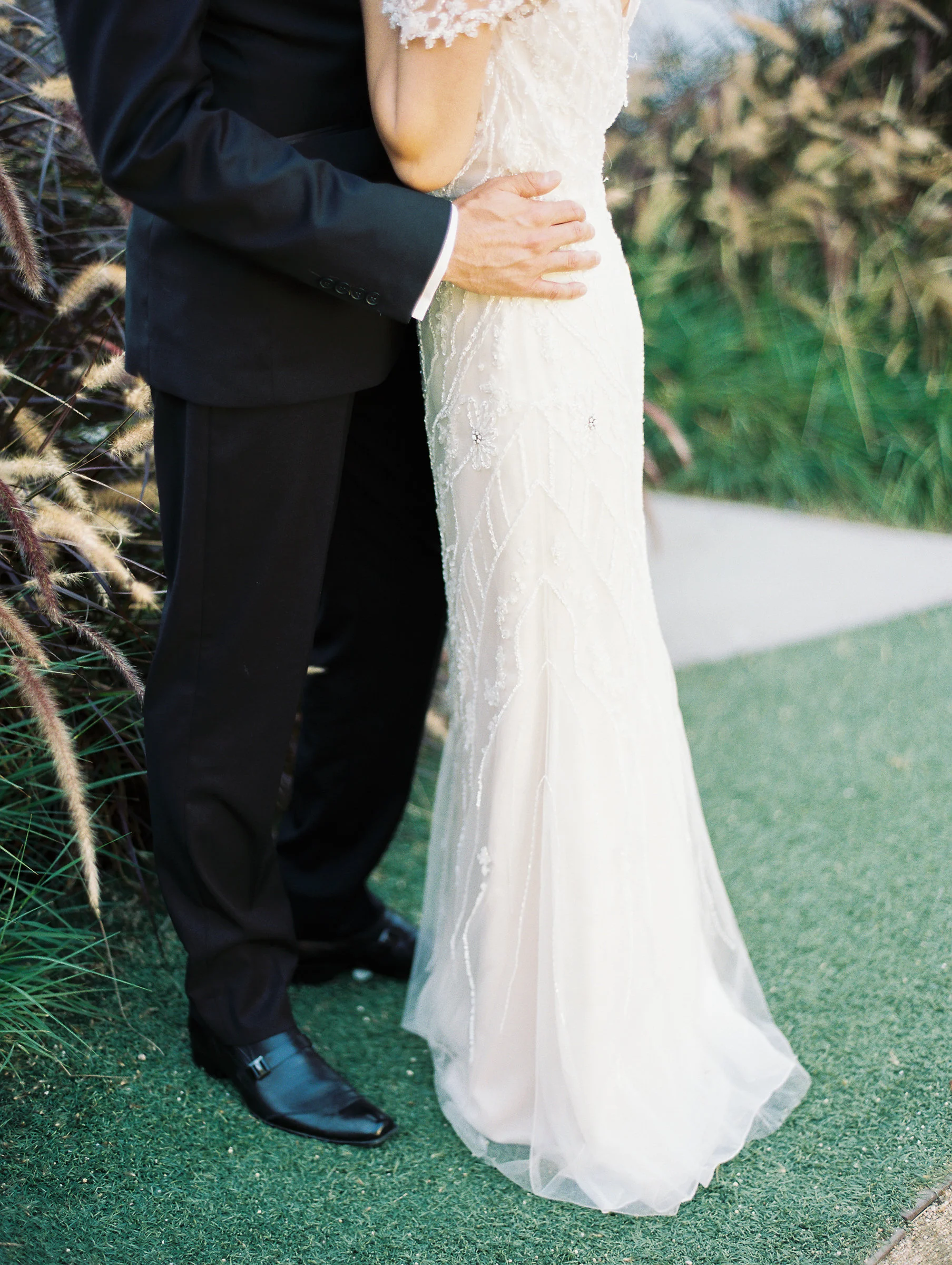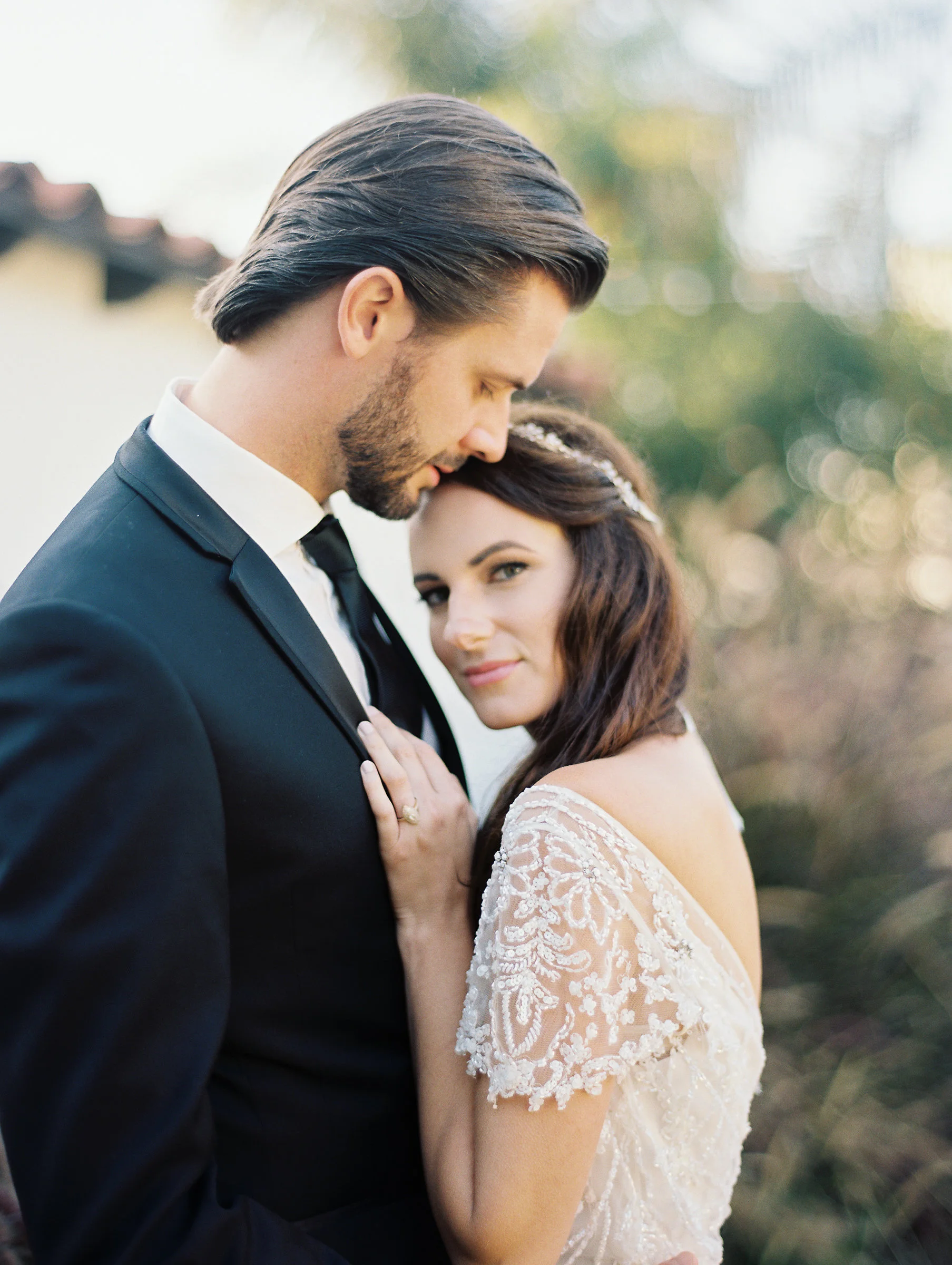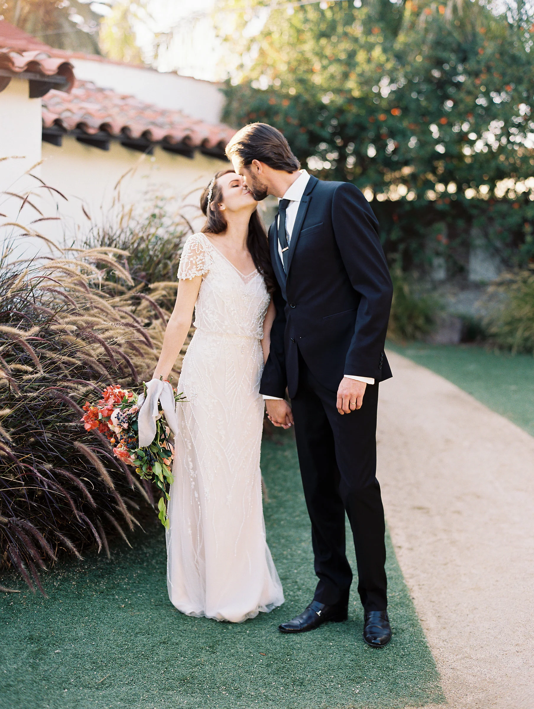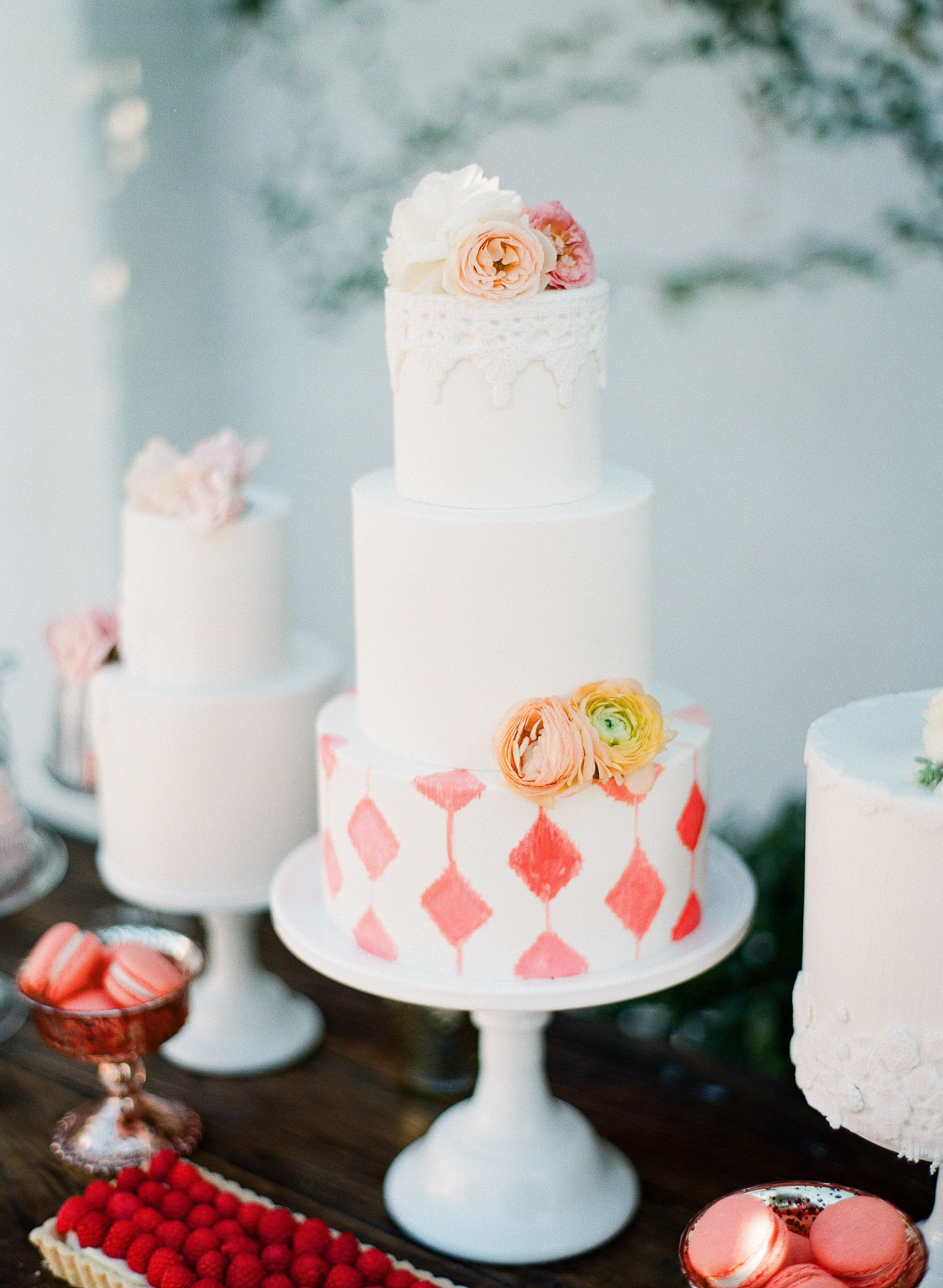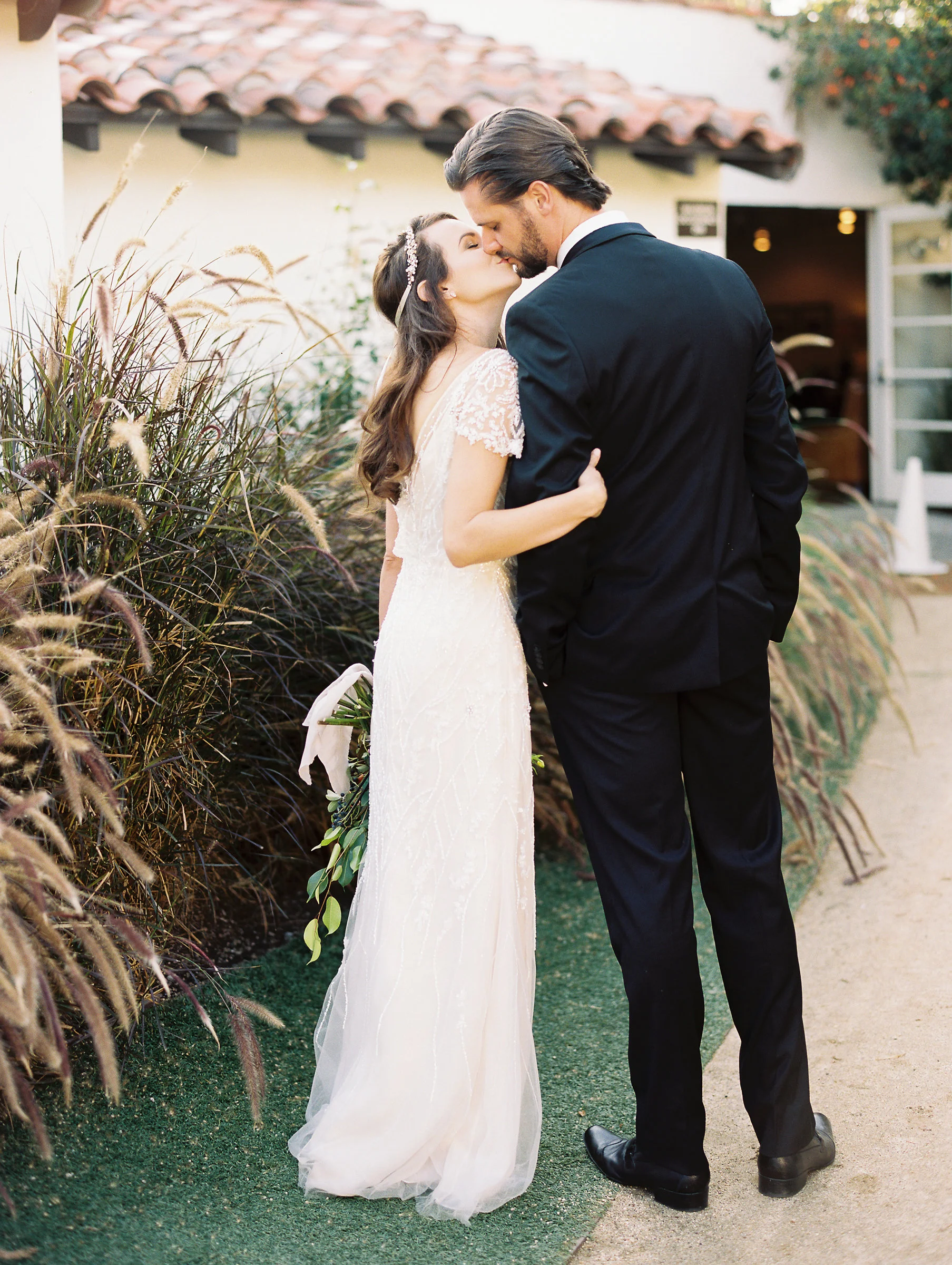 We started with rentals from Found Vintage Rentals and when we saw these metal copper chairs we had to have them. Amy Osaba brought a touch of straight up magic with her gorgeous florals and styling of the fruit spread on the table. Anthropologie champagne glasses gave a perfect touch of gold. Molly Jacques calligraphed a beautiful set of invitation suites and menus and stamps from Verde Studios accented those perfectly. Our gorgeous models wore BHLDN gowns, Susie Saltzman rings and were dolled up by Melissa of Blush by M Marie. Cakes by M Cakes Sweets made the sweet dessert bar even sweeter, and the Casino San Clemente was the backdrop for our workshop and the shoot.