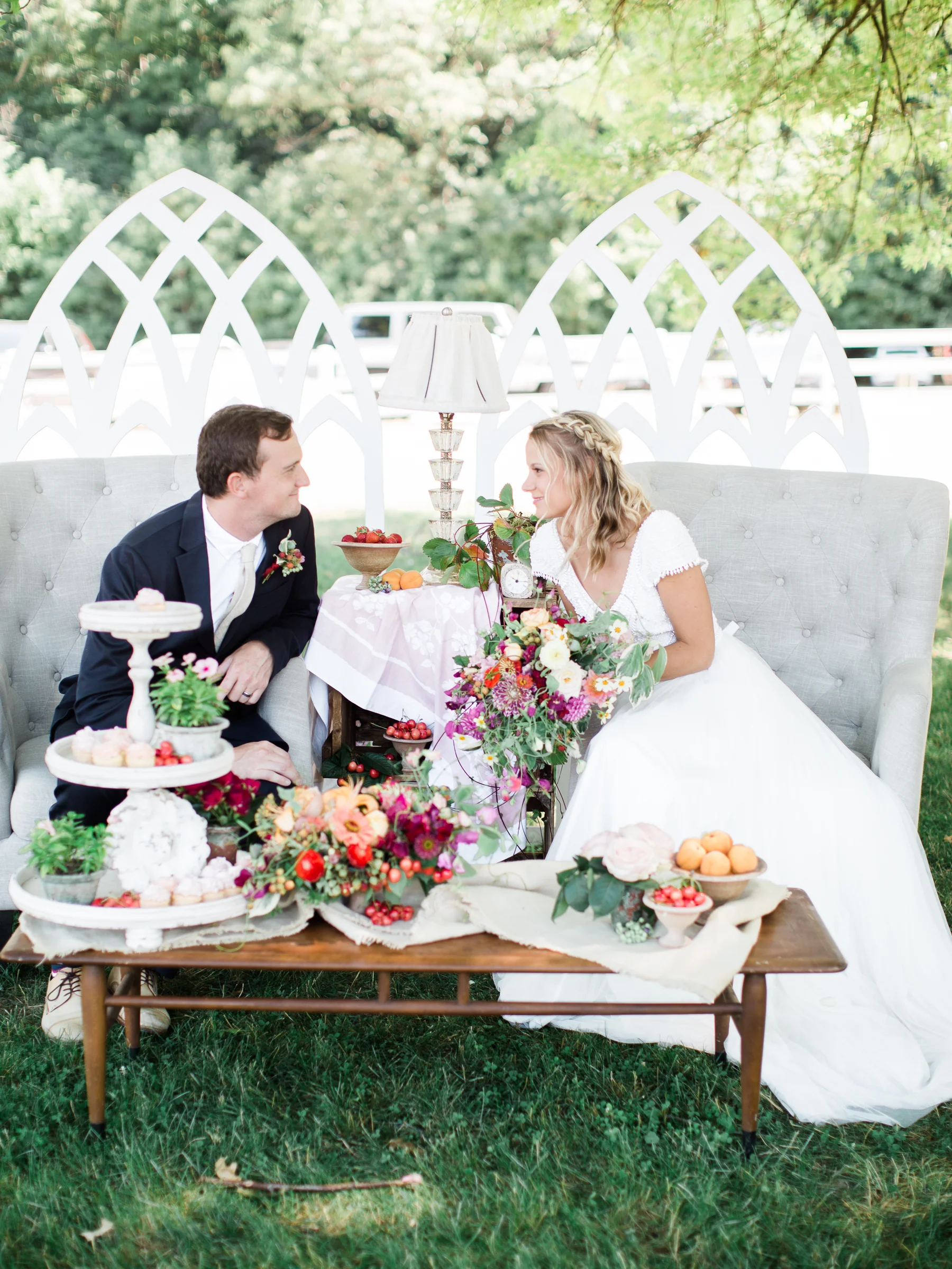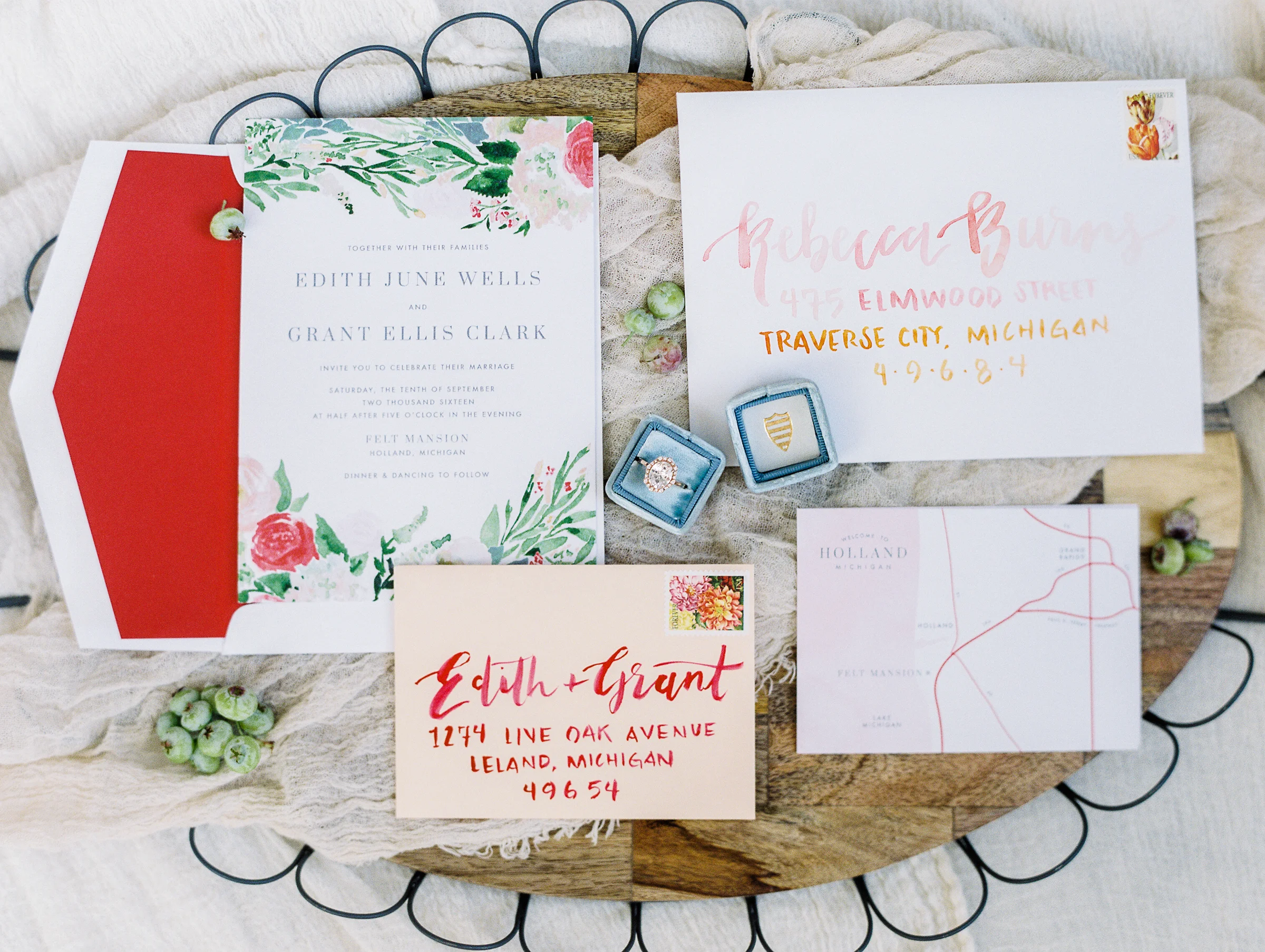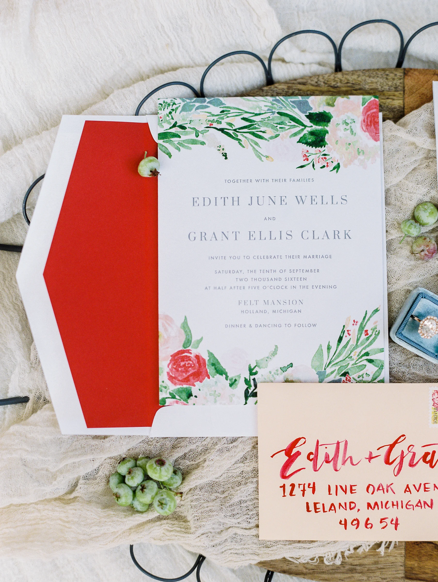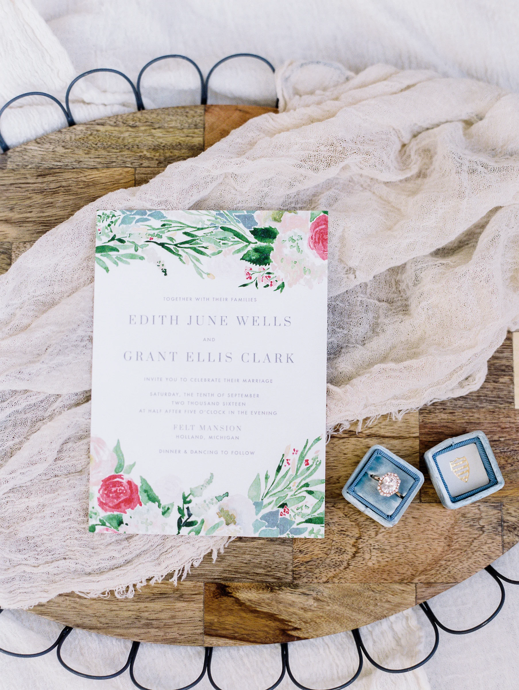 Photography: Ashley Slater Photography/Film Developed: The Find Lab/Workshop: The Bloom Workshop/Wedding Gown: Spring Sweet/Rentals: West Michigan Rental Co./Florals: Bloom Floral Design/Ring: Susie Saltzman/Calligraphy: Sable & Gray/Seating Vignette: The Found Cottage/Cakes & Desserts:/Hair & Makeup:Models: Jamie & Sarah/ Venue: The Felt Mansion